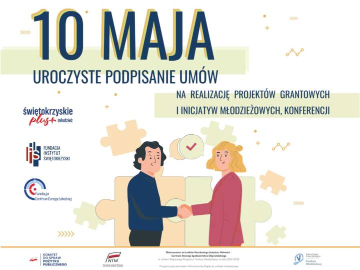 10 maja 2023 odbędzie się uroczyste podpisanie umów na realizację projektów grantowych i inicjatyw młodzieżowych - konferencji. Uroczystość odbędzie się w Wojewódzkim Domu Kultury w Kielcach.……